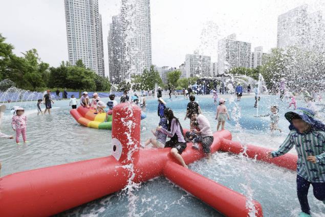 ▲ 중앙공원 물놀이장에서 아이들이 물놀이를 즐기고 있다. |
