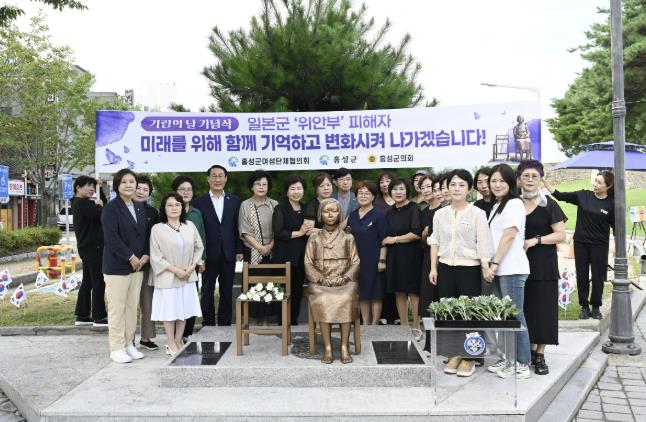 한편 홍성군은 군민들의 자발적 참여로 성금을 모아 지난 2017년 홍주읍성 인근에 홍성 평화의 소녀상이 건립된 이래, 2022년 12월 '홍성군 일본군 위안부 피해자 기념사업 등에 관한 조례'를 제정하고 평화의 소녀상 민간지킴이단을 운영하는 등 일본군‘위안부’피해자의 명예회복과 군민의 올바른 역사관 정립을 위해 노력하고 있다.