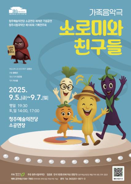 [뉴스스텝] 청주시립국악단은 9월 5일부터 7일까지 3일간 청주예술의전당 소공연장에서 제100회 기획연주회 가족음악극 ‘소로미와 친구들’을 선보인다.