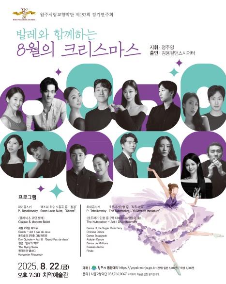 [뉴스스텝] 원주시립교향악단은 오는 22일 오후 7시 30분 치악예술관에서 제193회 정기연주회 ‘발레와 함께하는 8월의 크리스마스’를 개최한다.