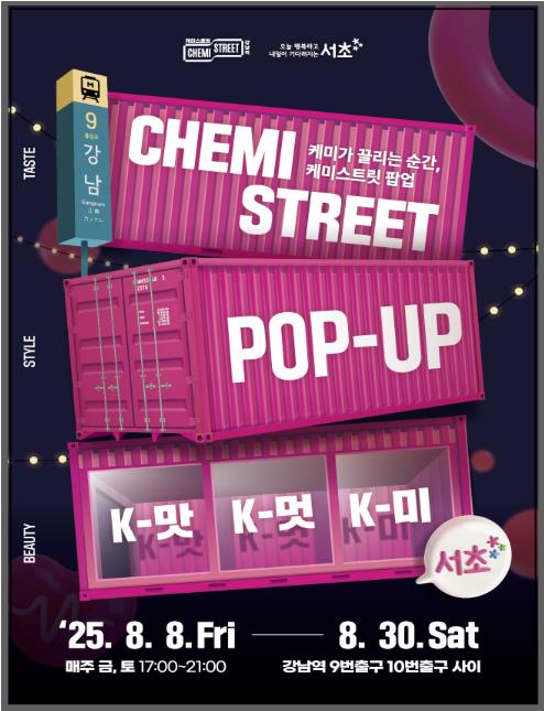 서울 강남 한복판에서 총 8회에 걸쳐 펼쳐지는 이번 ‘케미스트릿 팝업’은 도시 속 상권과 사람, 감성이 연결되는 새로운 문화 플랫폼을 조성하고 ‘K-맛, K-멋, K-미’가 결합된 서초구 로컬브랜드 ‘케미스트릿 강남역 상권’의 정체성 강화와 활성화를 위해 마련된 행사다.