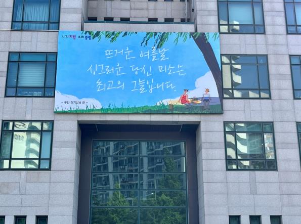 ▲ 2025 중랑행복글판 여름편이 게시된 중랑구청사 |