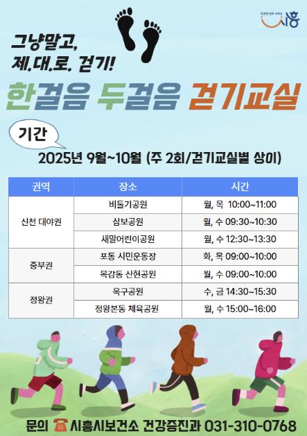 이형정 시흥시보건소장은 “걷기는 누구나 쉽게 실천할 수 있는 운동”이라며 “시민들이 걷기교실을 통해 건강한 신체활동을 생활 속에서 꾸준히 실천하길 바란다. 앞으로도 맞춤형 건강 프로그램을 지속적으로 운영하겠다”라고 말했다.