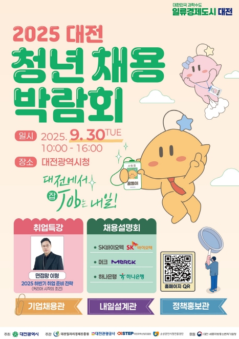 [뉴스스텝] 대전시는 오는 9월 30일 오전 10시부터 오후 4시까지 시청 2~3층에서 ‘2025 대전 청년채용박람회’를 개최한다고 22일 밝혔다.