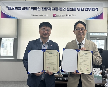 [뉴스스텝] 부산시는 '페스티벌 시월' 기간 부산을 방문하는 외국인 관광객의 교통 편의성을 높이기 위해, 어제(11일) 글로벌 택시 호출 플랫폼 '우버 택시(Uber Taxi)'와 업무협약(MOU)을 체결했다고 밝혔다.