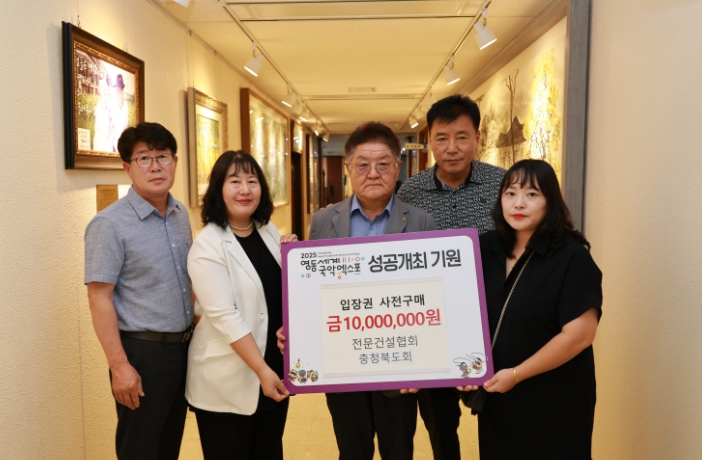 [뉴스스텝] 전문건설협회 충청북도회는 11일 충북 영동군청에서 2025 영동세계국악엑스포의 성공적인 개최를 기원하며, 입장권 1,000만 원어치를 사전 구매했다.