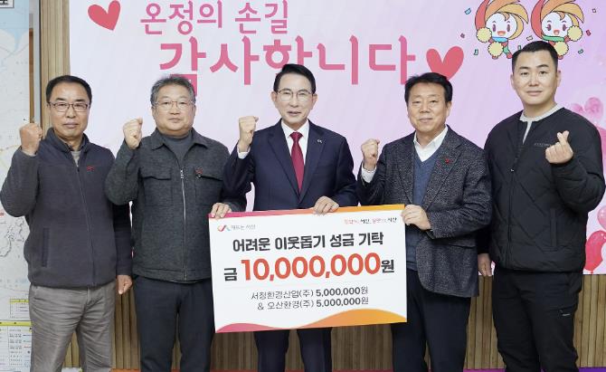 시는 이날 시청 시장실에서 이완섭 서산시장,한만성 서청환경산업(주) 대표, 안문환 오산환경(주) 대표 등이 참석한 가운데 기탁식을 개최했다.