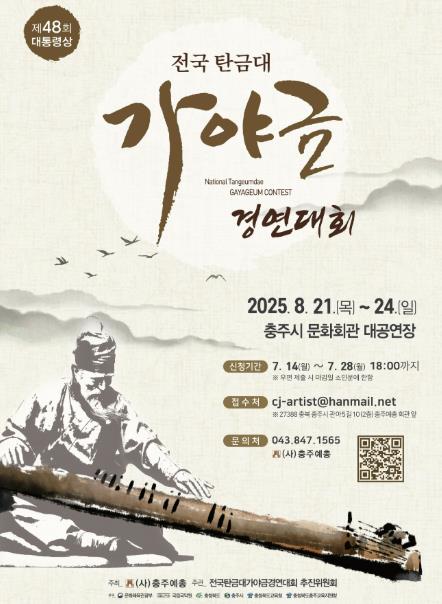 [뉴스스텝] (사)충주예총은 8월 21일부터 24일까지‘제48회 대통령상 전국 탄금대 가야금 경연대회’를 개최한다고 8일 밝혔다.