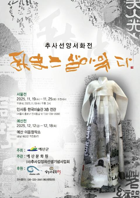 이번 전시는 추사 선생의 숭고한 학덕과 예술혼을 이어가고자 추사와 서예를 사랑하는 후학들의 참여로 마련됐으며, 추사를 다시금 기억하고 지역 문화 발전에 기여하는 뜻깊은 자리가 될 예정이다.