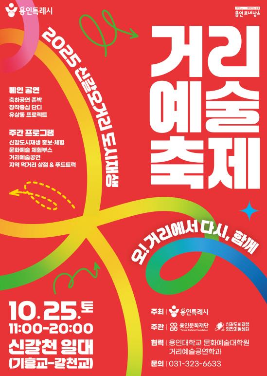 [뉴스스텝] 용인특례시는 25일 신갈오거리에 있는 신갈천 일대에서 ‘2025 신갈오거리 도시재생 거리예술축제’를 개최한다고 14일 밝혔다.