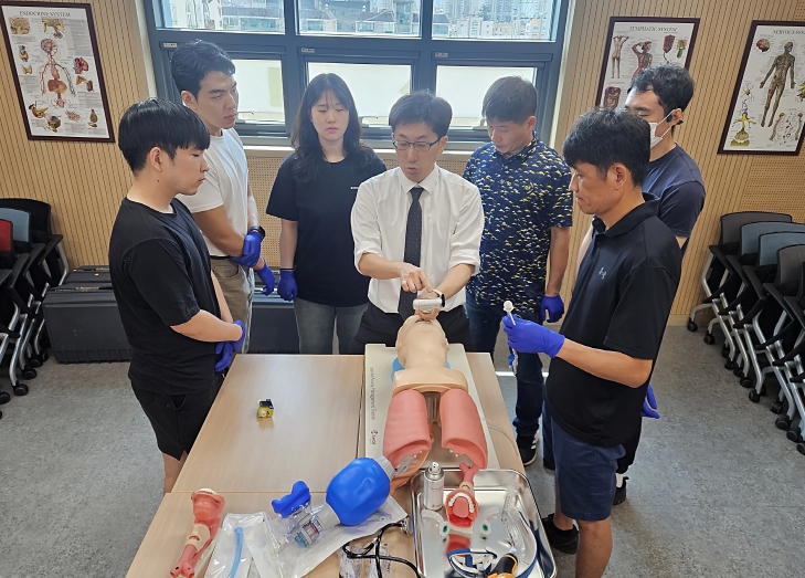 교육 과정은 ▲효율적인 기도관리 자세 유지법 ▲적절한 백밸브마스크 환기법 ▲기본·전문 기도유지 장비 활용 실습 등으로 구성됐다.