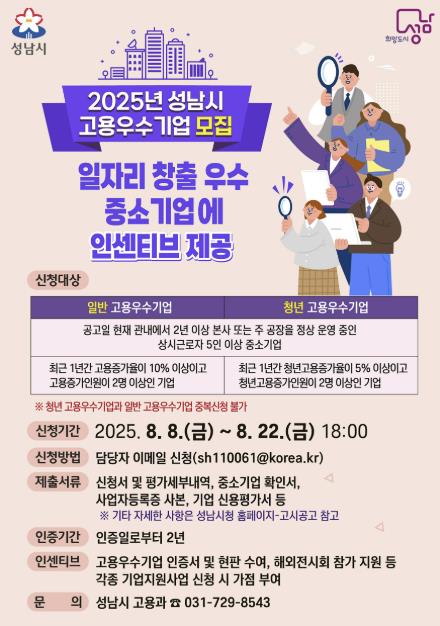 ▲ 2025년 성남시 고용우수기업 모집 포스터 |