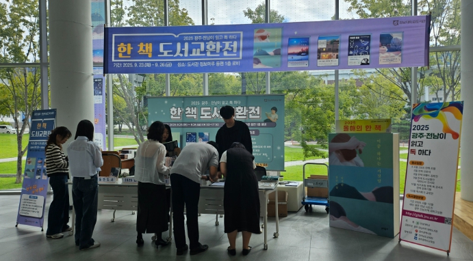 [뉴스스텝] 전남대학교 도서관은 지난 9월 23일부터 9월 26일까지 나흘간 도서관 정보마루 동편 1층에서 열린 ‘2025 한 책 도서교환전’이 성황리에 마무리됐다고 밝혔다.