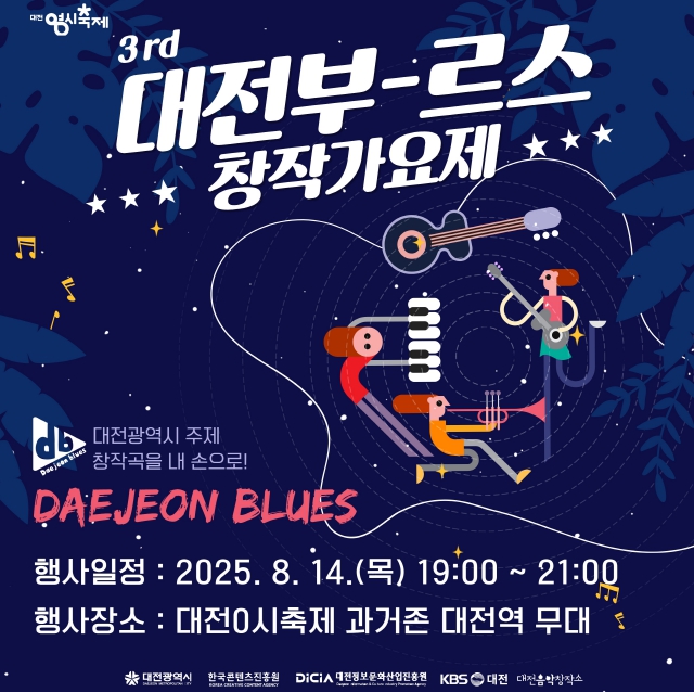 [뉴스스텝] 대전의 정서를 담은 창작 음악 무대, ‘제3회 대전부르스 창작가요제’가 오는 8월 14일 오후 7시부터 9시까지 대전역 앞 야외무대에서 화려하게 열린다.