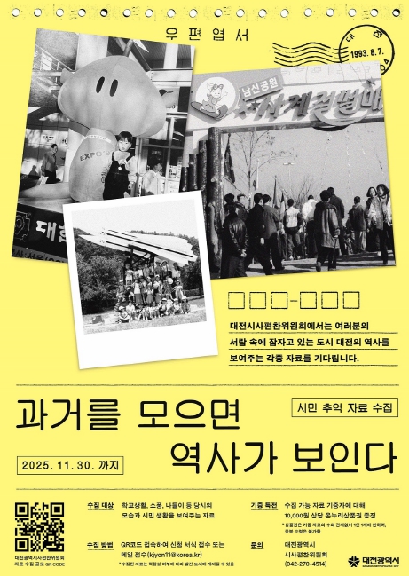 대상 자료는 ▲운동회 ▲소풍 ▲수업 ▲입학식·졸업식 등 학교 관련 추억과 ▲가족·친구와의 여행 ▲개인 나들이 등 대전 지역에서의 경험을 포함한다.