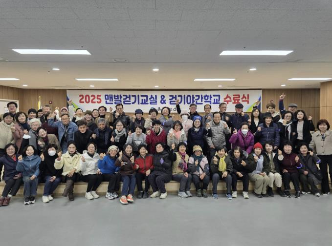 [뉴스스텝] 충주시는 시민들의 걷기 실천율 향상과 건강 증진을 위해 운영한 ‘신나는 맨발걷기 교실’과 ‘함께해요 걷기 야간학교’가 수료식을 끝으로 성황리에 마무리됐다고 밝혔다.
