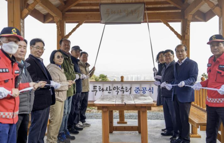 [뉴스스텝] 충북 증평군은 지난 26일 증평읍 송산리 두타산 자락에 주민과 등산객들이 편안하게 이용할 수 있는 약수터 조성 완료를 기념하는 현판식을 개최했다.