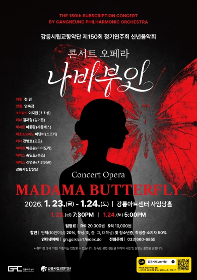 [뉴스스텝] 강릉시립교향악단은 2026년의 첫 정기연주회로 오는 23일(금) 19시 30분, 24일(토) 17시 강릉아트센터 사임당홀에서 콘서트 오페라‘나비부인’을 선보인다.