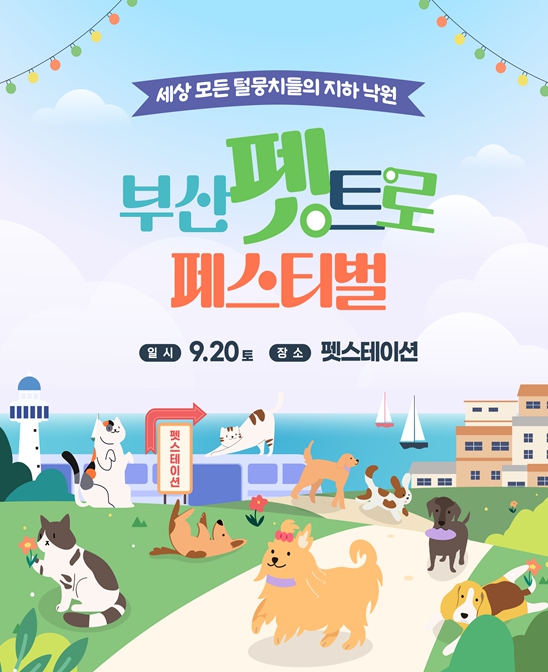 [뉴스스텝] 부산시는 오는 9월 20일 오전 10시 펫스테이션(도시철도 2호선 수영역~광안역 지하상가)에서 '반려동물 특화 거리' 활성화를 위한 '2025년 부산 펫트로 페스티벌'을 개최한다고 밝혔다.