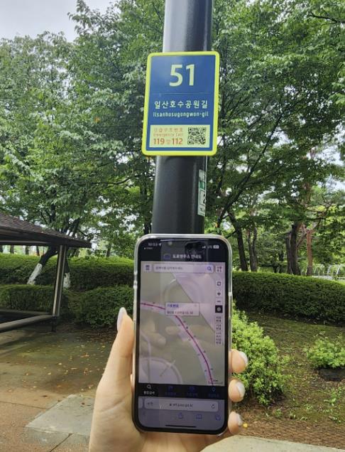 QR코드를 스캔하면 해당 지점의 도로명주소, 지도 위치, 주변 시설 정보가 표시된다. 음성안내와 112·119 문자신고 기능도 포함돼 긴급상황 시 신속한 위치 전달이 가능하다.
