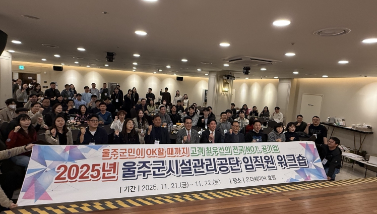 [뉴스스텝] 울주군시설관리공단(이사장 최인식)은 11월 21일 및 22일 양일간 울산 울주군 서생면 소재 온더웨이브에서, 이순걸 울주군수와 최길영 울주군의회 의장이 참석한 가운데,“전국 NO1.공기업, 그 가치를 위한 시작”이란 슬로건으로, 임직원 120여명이 모여 2025년 임직원 워크숍(이하 “워크숍”이라 함)을 개최했다.
