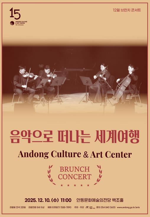 [뉴스스텝] 안동문화예술의전당은 매월 둘째 주 수요일, 바쁜 일상 속 잠시 여유를 찾고자 하는 클래식 애호가들을 위한 브런치 콘서트를 정기적으로 운영하고 있다. 12월 10일 오전 11시에는 백조홀에서 한 해의 끝자락을 따뜻하게 채워줄 브런치 콘서트 ‘음악으로 떠나는 세계여행’을 선보인다.