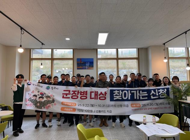 [뉴스스텝] 원주시는 9월 30일부터 10월 1일 이틀간 군 장병 대상 “찾아가는 신청”을 접수받기 위해 항공사제71항공정비대대, 1군지사 2곳을 방문했다.