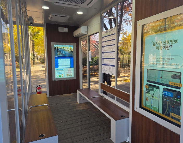 실내에 설치된 스크린에는 승강장 외부 CCTV 영상과 버스정보시스템(BIS)이 연계되어, 정류장으로 접근하는 버스의 현재 상황을 쉽게 확인하여 승차 편의와 안정성을 높였다.