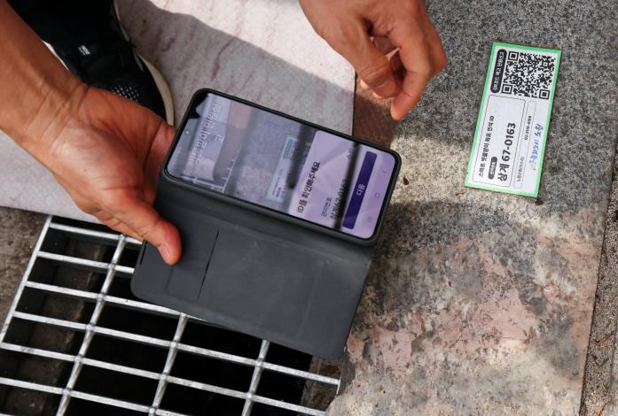 ▲ 빗물받이 QR코드 신고 시연 |
