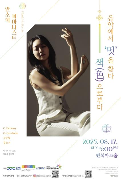 [뉴스스텝] 화성특례시와 화성시문화관광재단이 추진하는 ‘2025 경기예술지원 모든예술31 화성’ 사업에 선정된 피아니스트 안소희의 리사이틀 '음악에서 ‘멋’을 찾다: 색(色)으로부터'가 8월 17일 오후 5시, 동탄복합문화센터 반석아트홀에서 열린다.