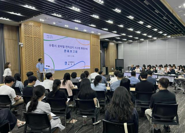 이날 보고회에는 이원구 수원시 경제정책국장과 모바일 전자고지 시스템 구축·운영 부서 관계자, 사업수행업체 관계자 등이 참석했다.