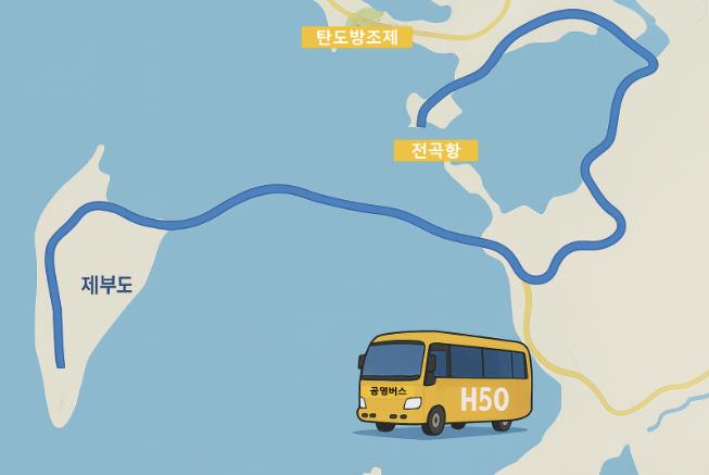 H50번 노선은 전곡항을 출발해 제부도로 향하는 유일한 대중교통 수단으로, 주말과 공휴일 이용객이 집중되는 시간대에 맞춰 기존 16회에서 24회로 증차 운행될 예정이다.