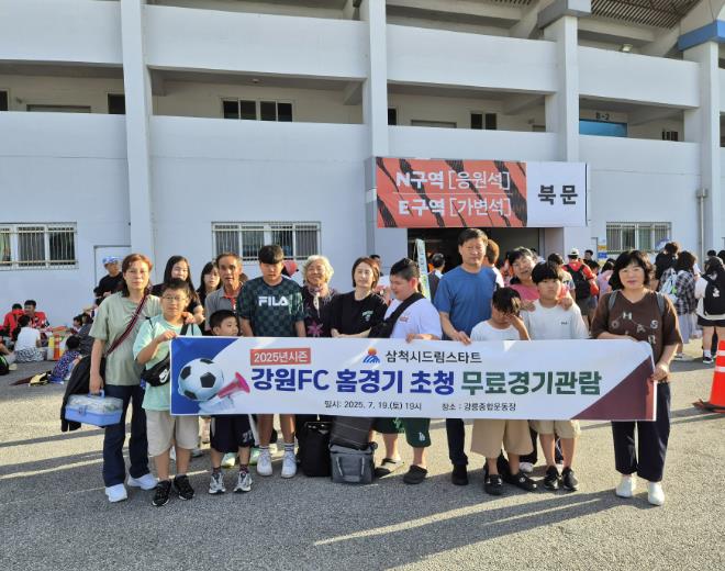 [뉴스스텝] 삼척시드림스타트는 지난 7월 19일 오후 7시, 강릉하이원아레나에서 열린 ‘2025 강원FC vs 대전하나시티즌’ 홈경기에 맞춰 '삼척시의 날' 행사 일환으로 드림스타트 아동과 가족을 초청해 무료 관람 행사를 진행했다.
