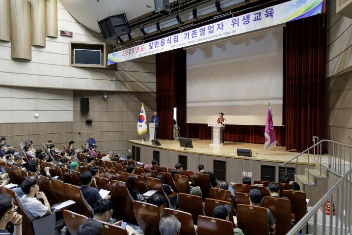 | ▲ 박강수 마포구청장이 2025 일반음식점 기존영업자 위생교육에서 인사말씀을 하고 있다. |
