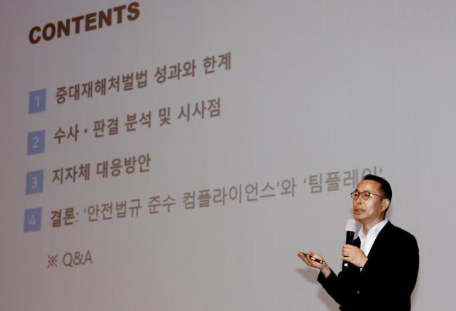 교육은 법무법인 대륙아주 김영규 변호사가 ‘중대재해처벌법 시행 3년, 수사·판결 분석과 대응방안’을 주제로 강연을 진행했다.