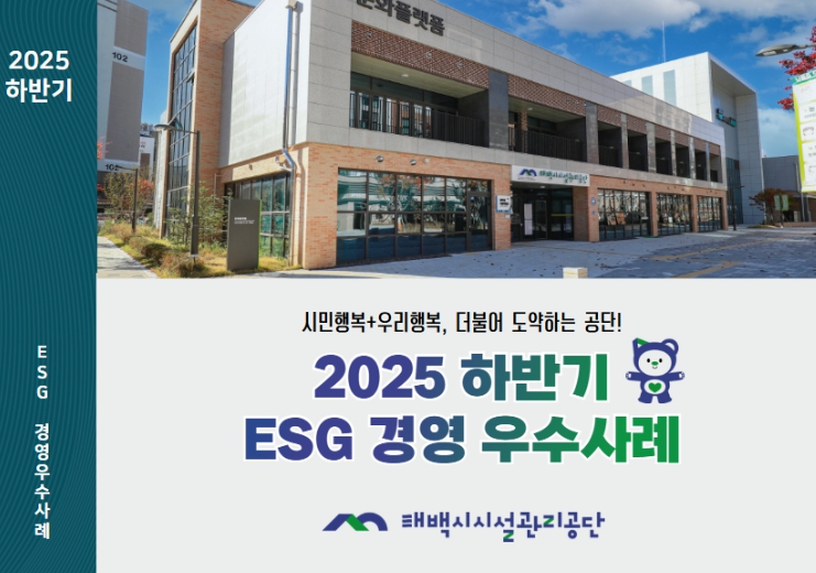 [뉴스스텝] 태백시시설관리공단은 2025년 하반기 동안 추진한 ESG 경영 주요 정책과 성과를 종합한 '2025 하반기 ESG경영 우수사례집'을 발간하고, 시민 체감형 ESG 경영 실천 사례를 공유한다고 밝혔다.