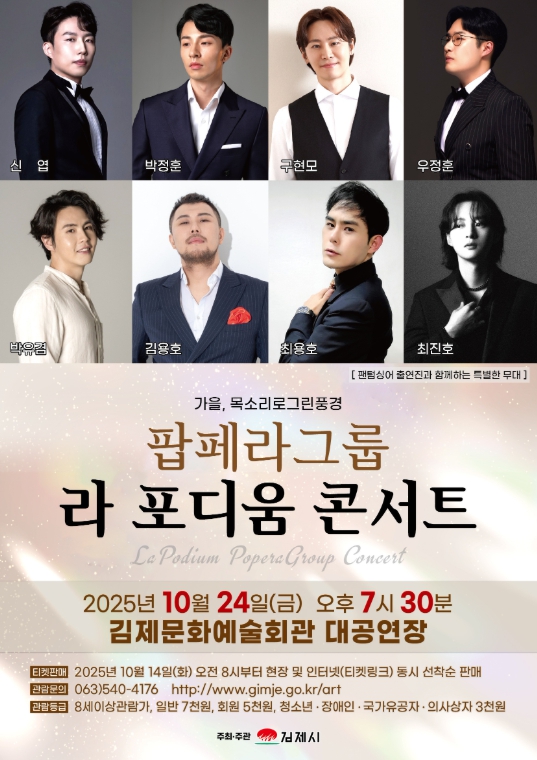 [뉴스스텝] 깊어 가는 가을, 특별한 음악의 향연 팝페라 그룹'라 포디움 콘서트'가 오는 24일 오후 7시 30분 김제문화예술회관 대공연장에서 펼쳐진다.