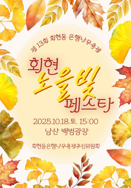 회현동 은행나무축제추진위원회 안용덕 위원장은 “주민과 다양한 지역 구성원들이 힘을 모아 준비한 만큼, 모두가 함께 어울려 소통하고 공감하는 따뜻한 축제가 되길 바란다”고 말했다.