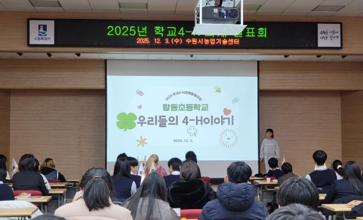 [뉴스스텝] 수원특례시는 3일 농업기술센터 대강당에서 ‘학교4-H과제 발표회’를 열고, 1년 동안 각 학교가 추진한 4-H 과제 활동을 공유했다.