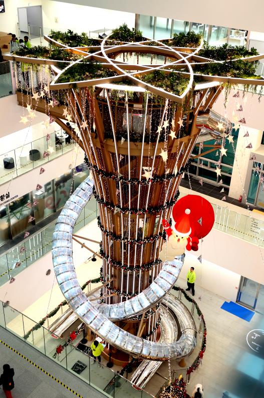 [뉴스스텝] 동작구가 신청사의 명물, 슬라이드 ‘동작스타’를 초대형 크리스마스트리로 새롭게 단장했다고 밝혔다.