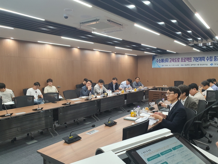 [뉴스스텝] 경상북도는 11일 경상북도 동부청사에서 포항시, 영덕군, 울진군 등 동해안권 주요 시군과 포스코홀딩스, 플랜텍을 비롯한 기업 관계자들이 참석한 가운데 무탄소전원 시대를 선도하기 위한 ‘수소에너지 고속도로 프로젝트’ 기본계획 수립 중간 보고회를 개최했다.