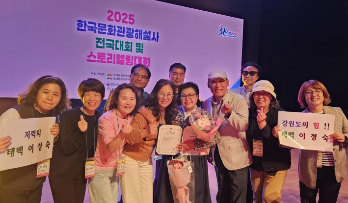[뉴스스텝] 태백시는 시 문화관광해설사 이정숙 씨가 지난 9월 29일부터 30일까지 충남 부여에서 열린 '2025년 한국문화관광해설사 스토리텔링 경연대회'에서 최고상인 금상을 수상했다고 밝혔다.