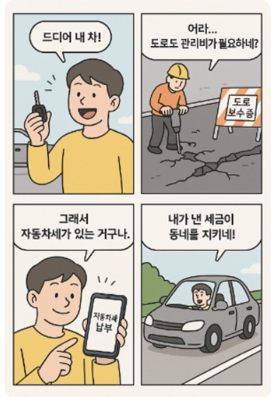 ‘인생 4컷 만화 시리즈’는 주민세, 자동차세, 지방소득세 등 주요 지방세를 주제로 한 만화 콘텐츠로, 주민들이 세금 제도를 친근하고 쉽게 이해할 수 있도록 돕는다.