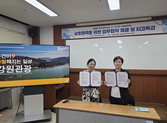 최성현 강원관광재단 대표이사는 “이번 협약은 글로벌 시장, 특히 독일어권과 유럽 시장에서 강원 관광의 경쟁력을 높이는 중요한 계기가 될 것”이라며, “독어독문학전공과의 긴밀한 협력을 통해 미래 관광 인재를 양성하고 강원의 국제적 위상을 제고해 나가겠다”고 말했다.