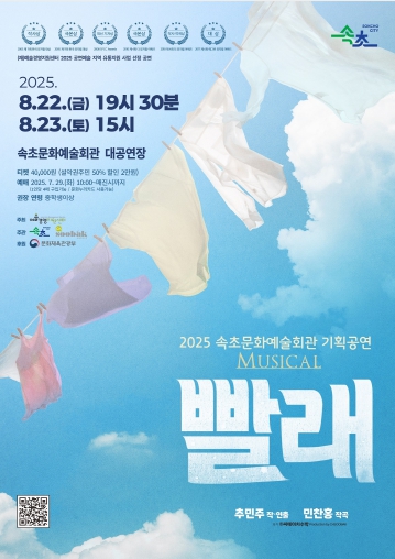 [뉴스스텝] 속초시는 시민과 관광객에게 따뜻한 감동을 전하는 뮤지컬 ‘빨래’를 오는 8월 22일 오후 7시 30분, 23일(토) 오후 3시에 속초문화예술회관 대공연장에서 선보인다.