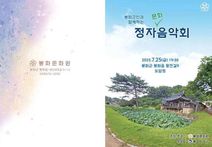 [뉴스스텝] 봉화문화원은 25일 오후 7시 30분 봉화읍 도암정(황전길 9)에서 봉화 군민과 함께하는 정자 음악회를 개최한다.