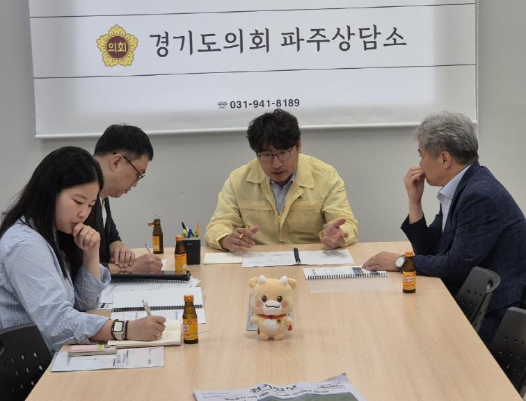 [뉴스스텝] 경기도의회 조성환(더불어민주당, 파주2) 의원은 경기도의회 파주상담소에서 경기환경에너지진흥원과 도민 소통행사 추진을 논의하는 협의회를 열고, 파주시에서 10월(예정) 진행할 ‘찾아가는 기후환경 토크콘서트’ 준비 상황을 점검했다.