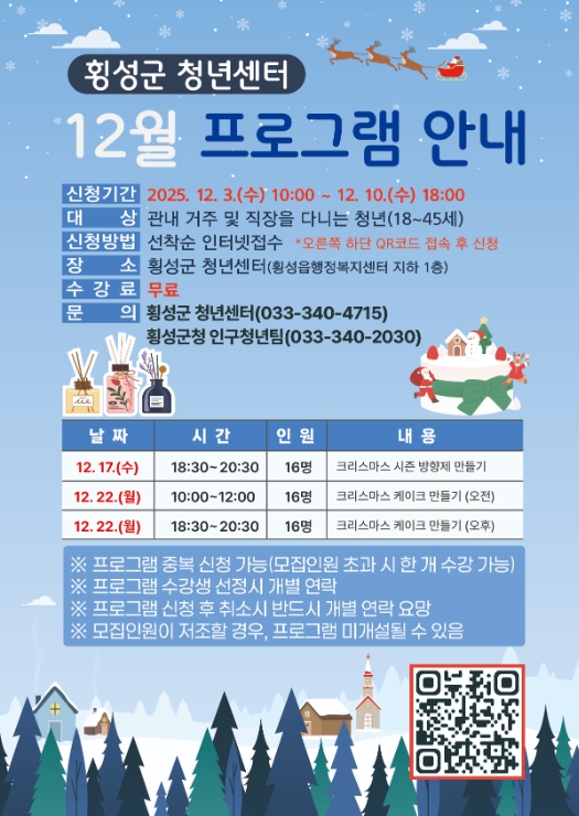 | ▲ 횡성군 청년센터 12월 프로그램 수강생 모집 |