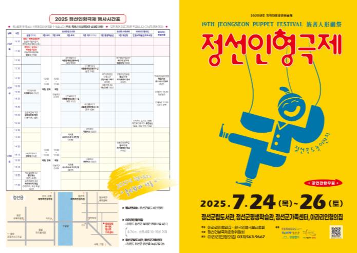 [뉴스스텝] 2007년부터 개최되어 어린이 중심의 가족 축제로 자리매김한 제19회 정선인형극제가 오는 7월 24일(정선군립도서관, 17시) 개막식을 시작으로 3일간 정선군평생학습관, 정선군가족센터, 아라리인형의집에서 다채롭게 펼쳐진다.