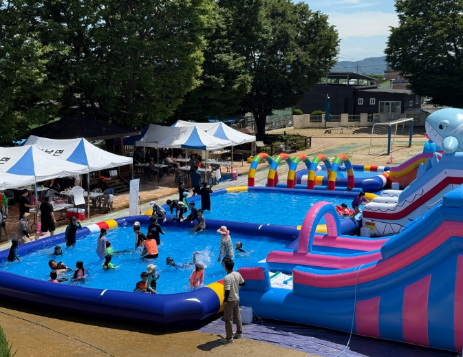 물놀이 시설로 ▲에어슬라이드 3종 ▲분수 터널을 설치하고, ▲물총 명사수 대결 ▲점심 바비큐 파티 등 부대 프로그램도 함께 운영해 가족 단위 방문객들의 호응을 얻었다.